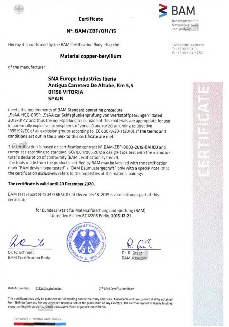 - Materiał: stop miedzi i berylu