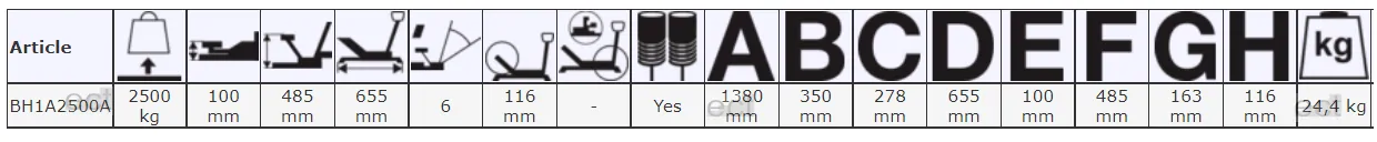 Podnośnik wózkowy aluminiowy 2.5 tony typu "żaba" BH1A2500A BAHCO