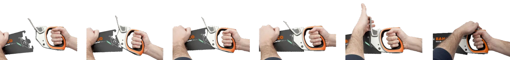 - Asymetryczny kształt sprawia, że siły oddziaływują na dłoń równomiernie (w tradycyjnych piłach ręcznych zazwyczaj siły koncentrują się na środkowej części ręki)