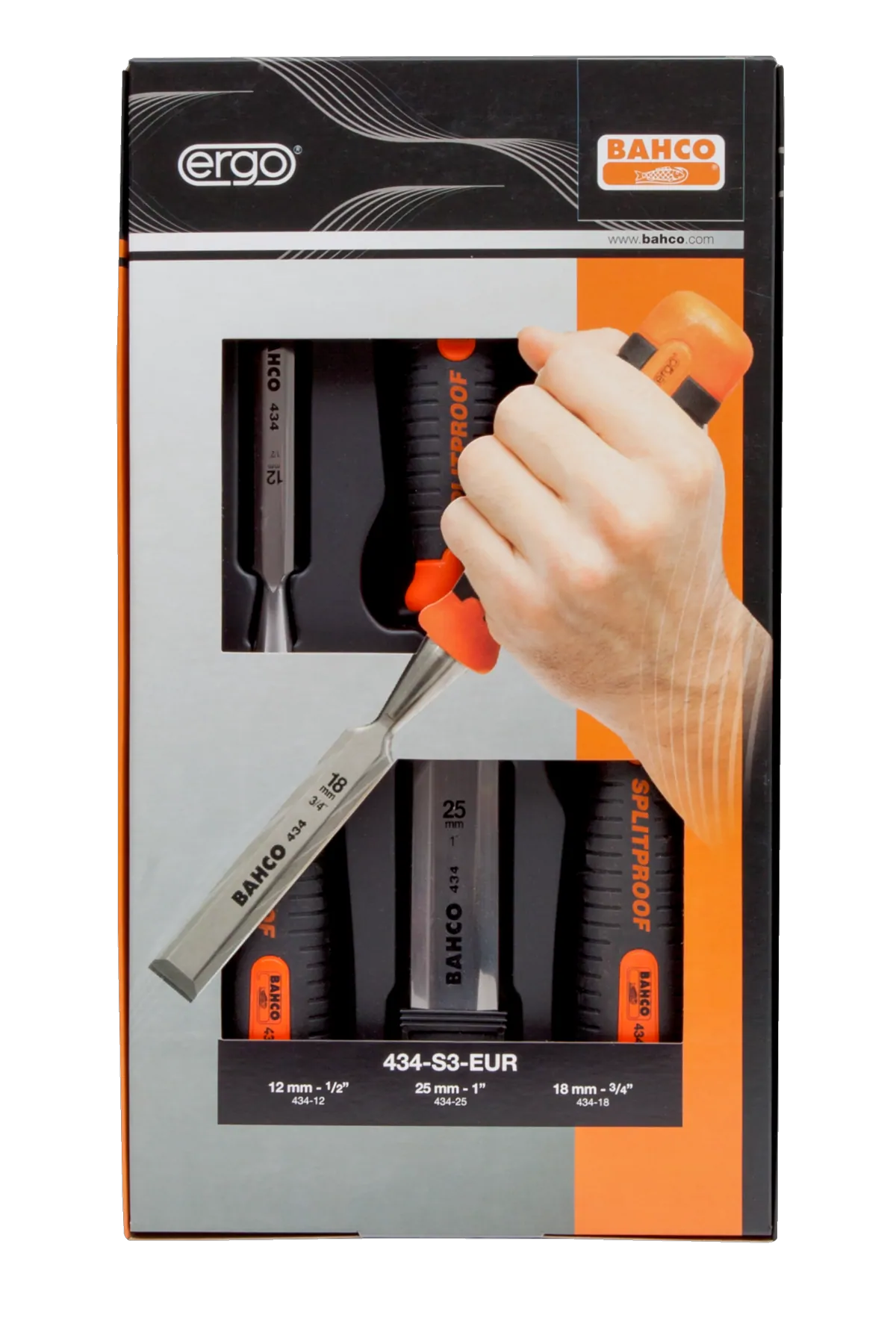 Zestaw 3 sztuk dłut do drewna ERGO™ 434-S3-EUR BAHCO